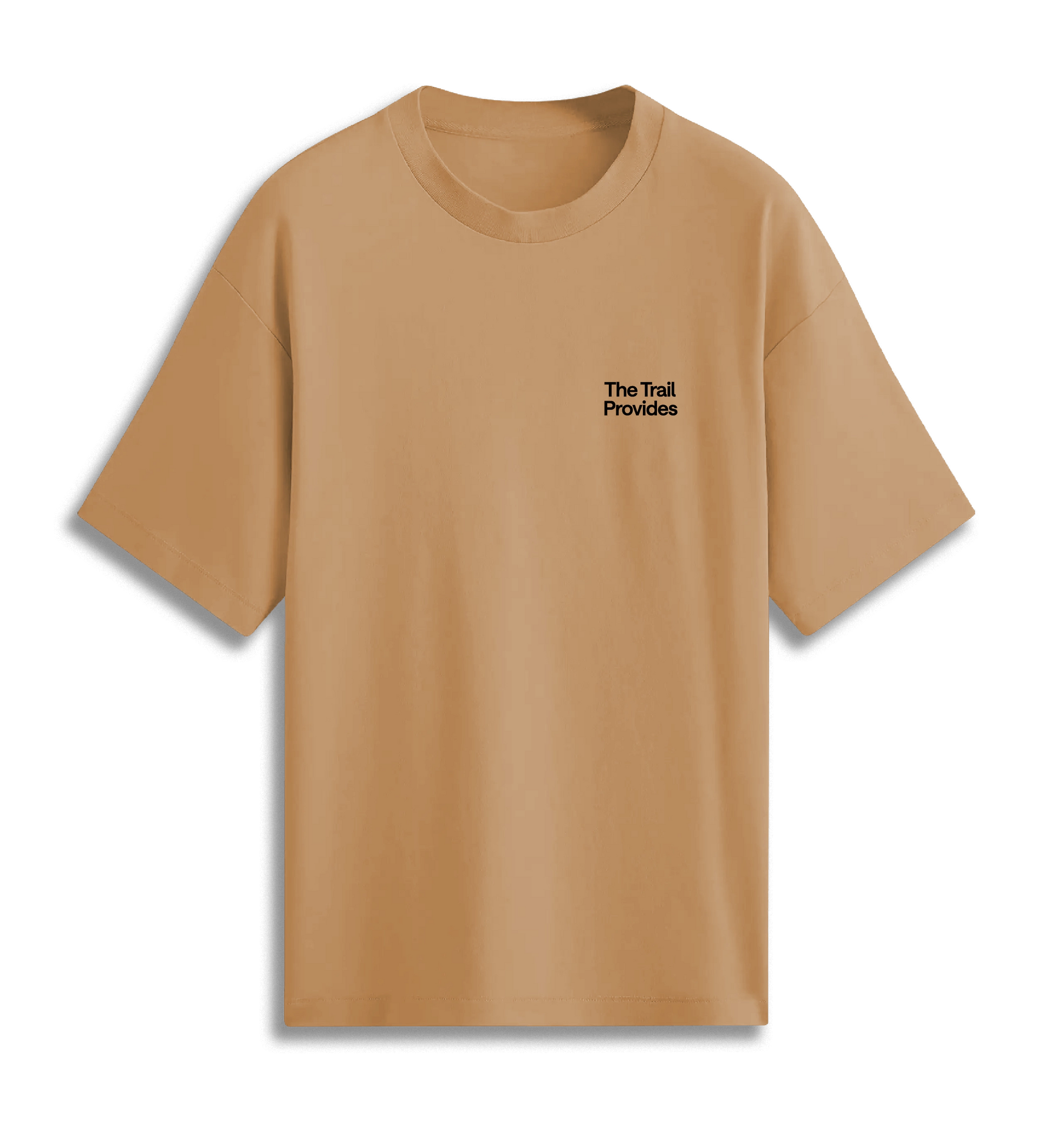 The trail provides. Word. Keep the spirit of the trail alive with this unisex premium heavyweight t-shirt with black embroidered typography on the chest and on the back.
