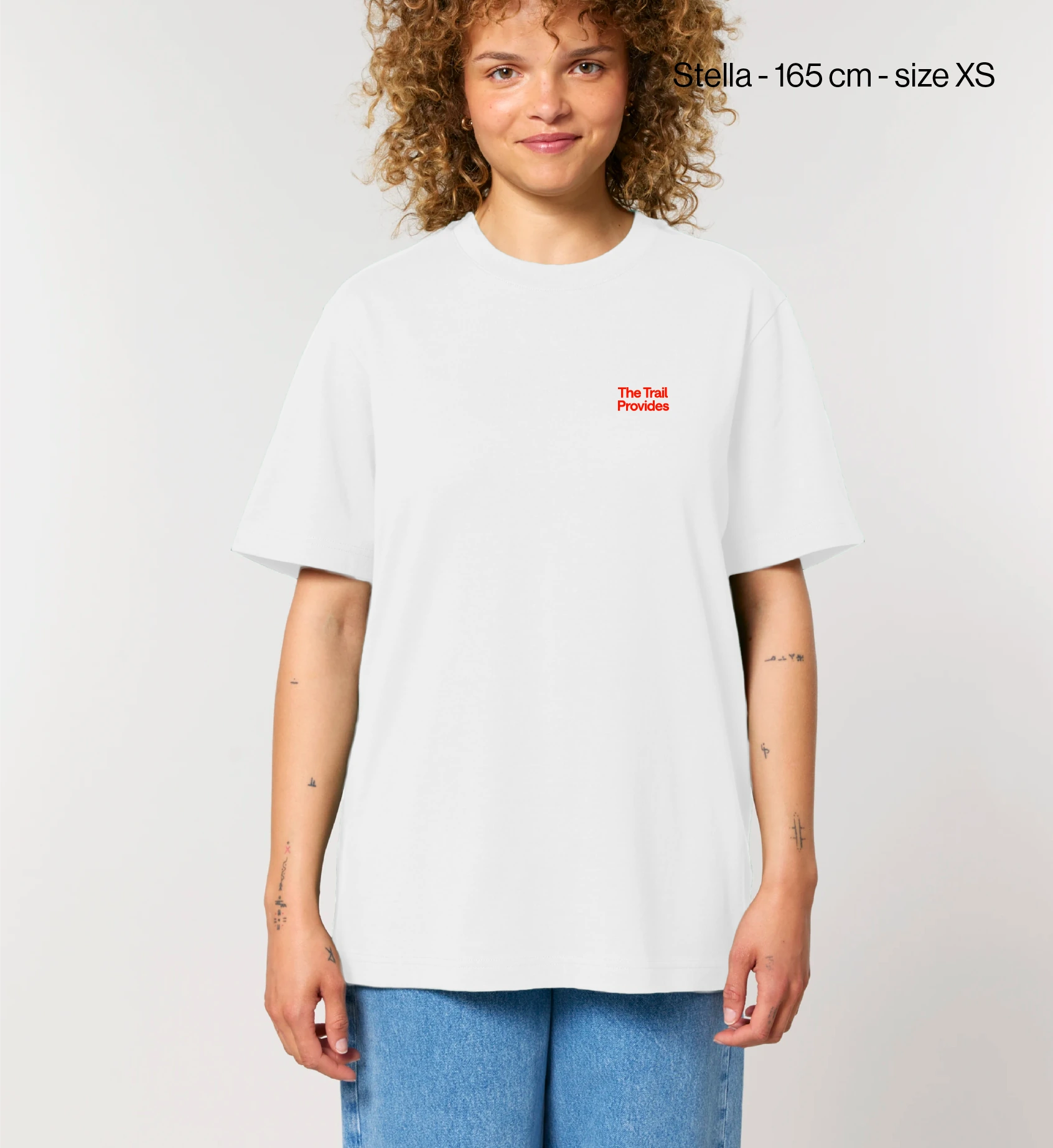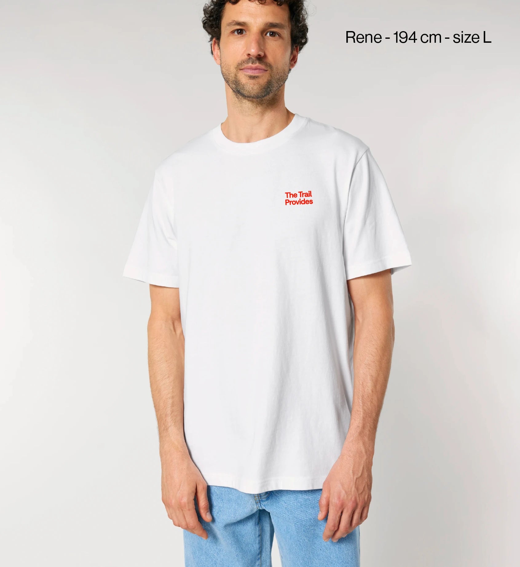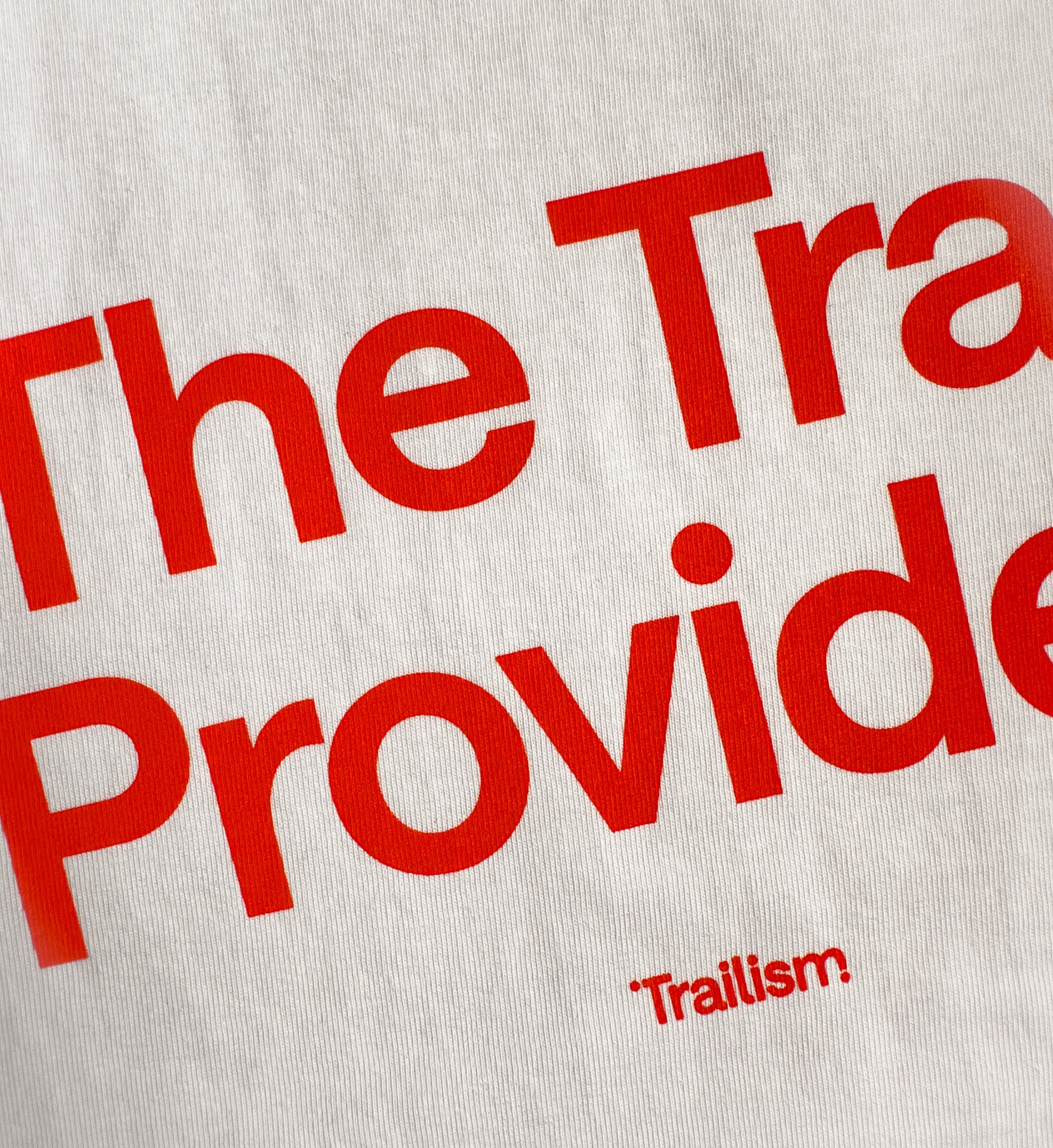 The trail provides. Word. Keep the spirit of the trail alive with this unisex premium heavyweight t-shirt with red screen-printed typography on the back and a red screen-printed Trailism logo on the chest.